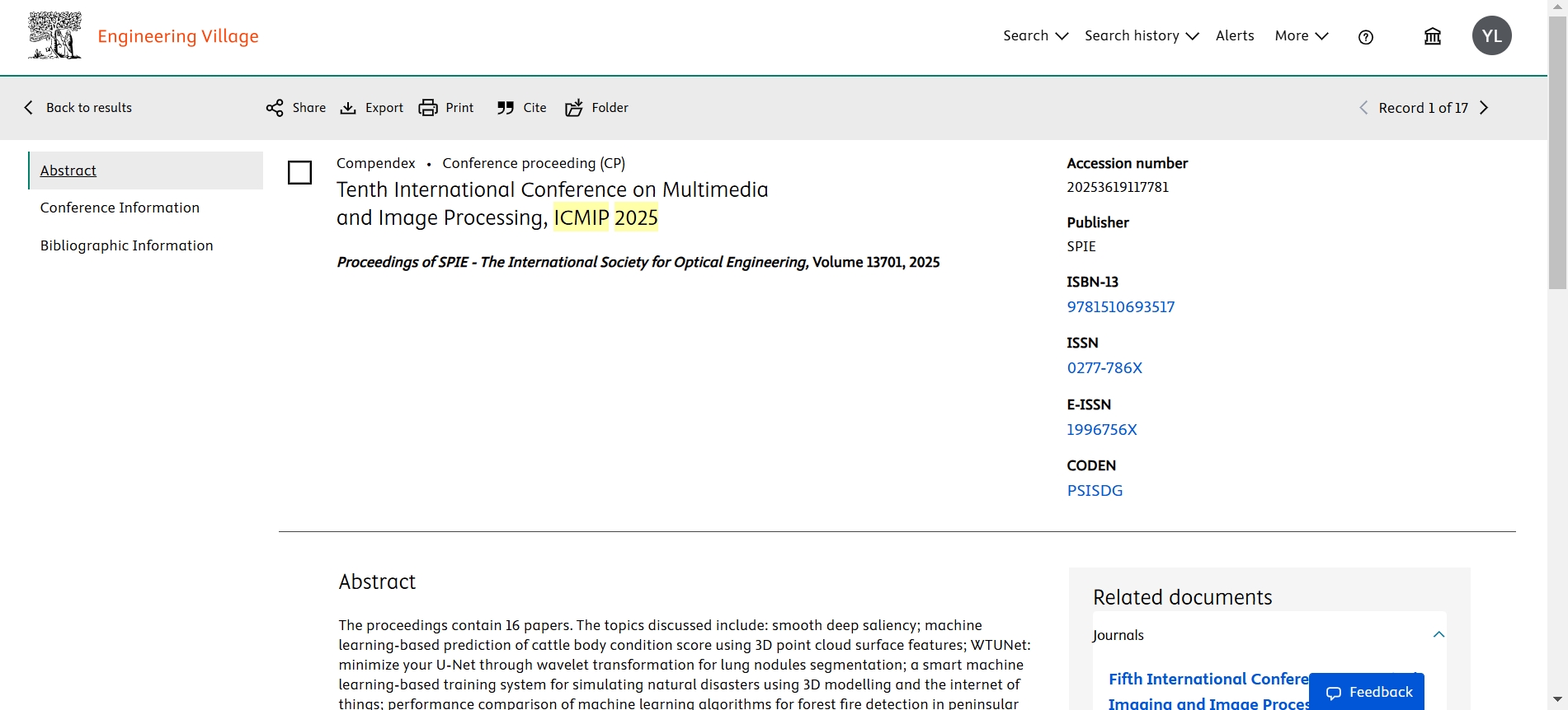 ICMIP 2025 conference proceedings have been included into SPIE Digital Library, indexed by Ei Compendex and Scopus.